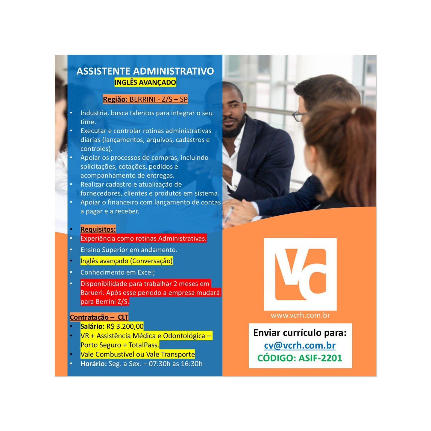 INGLÊS AVANÇADO Região: BERRINI – Z/S – SP Industria, busca talentos para integrar o seu time. Apoiar os processos de