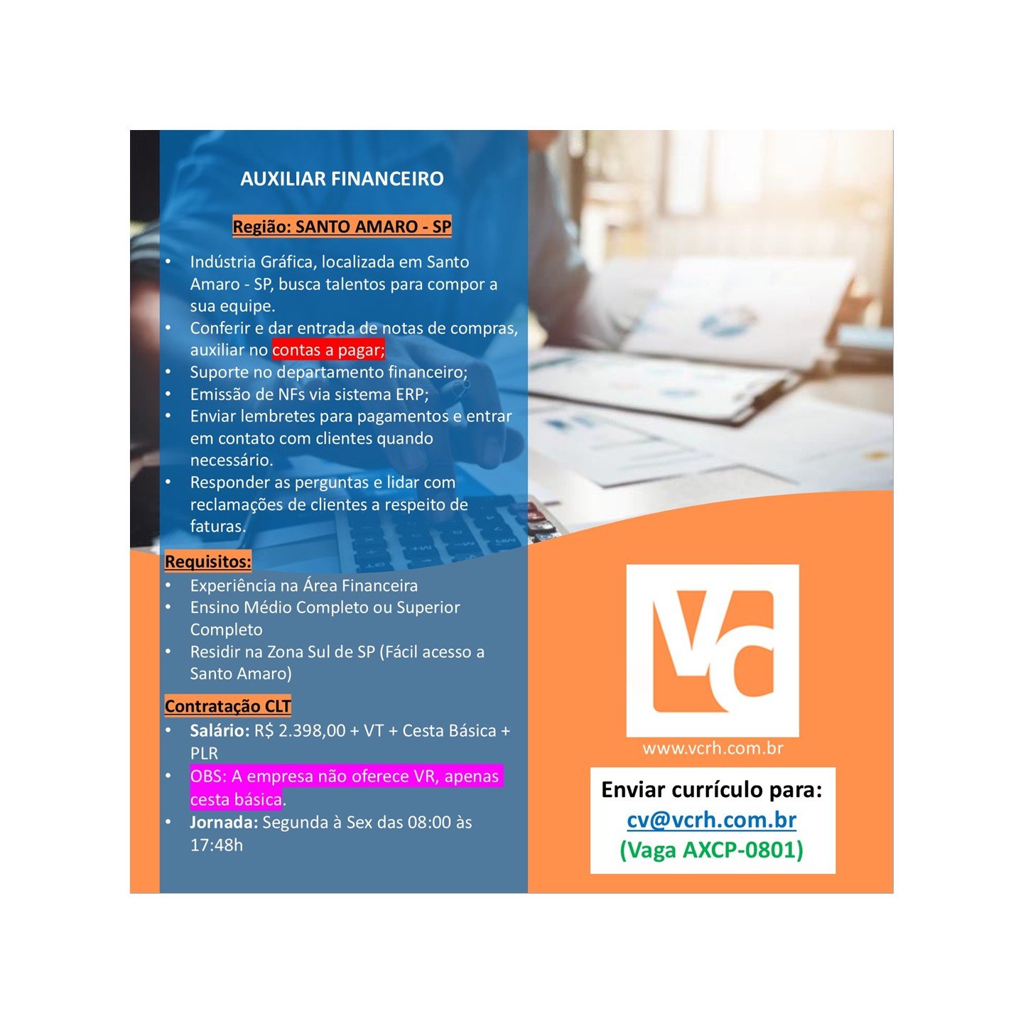 Região: SANTO AMARO – SP Indústria Gráfica, localizada em Santo Amaro – SP, busca talentos para compor a sua equipe.