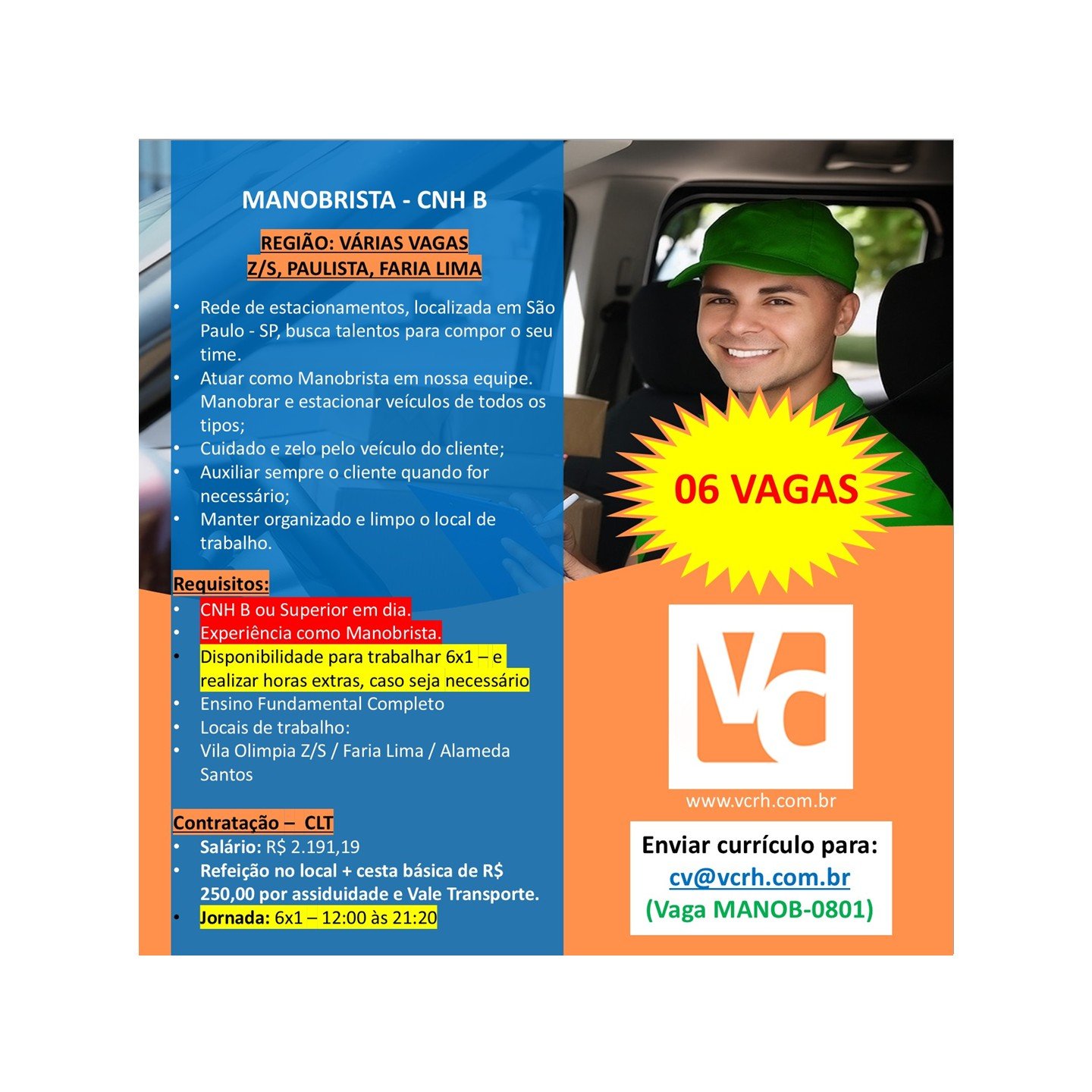 REGIÃO: VÁRIAS VAGAS Z/S, PAULISTA, FARIA LIMA Rede de estacionamentos, localizada em São Paulo – SP, busca talentos para compor […]